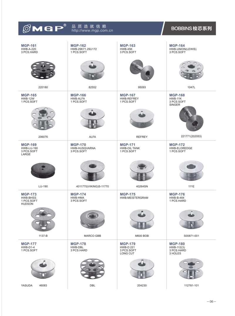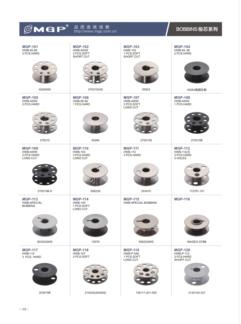 寧波市宏威機械制造有限公司 MGP品牌成立于1990年,總部位于浙江寧波。企業分為浙江寧波、浙江紹興、河北、三大生產基地。全產業鏈自主生產的全產業鏈。是國內較大的梭芯生產基地和縫紉機配件的企業之一。是我國縫配件梭芯、梭殼縫配件出口量較大企業。MGP品牌產品與各大整機公司配套,并銷售80多個地區,深受客戶信賴。